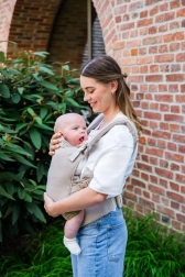 La dotazione pratica include un cappuccio rimovibile per proteggere da vento e sole, morbide coperture per le fibbie contro i punti di pressione, una piccola tasca per gli oggetti e elastici alle estremità degli spallacci per un fissaggio ordinato. Il tessuto ipoallergenico e traspirante è delicato sulla pelle sensibile di bambino e genitore e garantisce comfort per tutta la giornata.