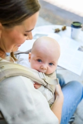 Il supporto lombare stabile e gli spallacci morbidi distribuiscono il peso in modo uniforme. Le morbide coperture delle fibbie aumentano il comfort anche durante le sessioni di portare più lunghe.