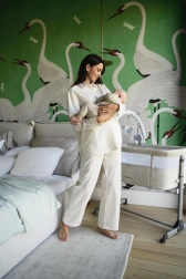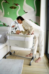 - Il lettino MoMi REVO è inoltre dotato di ruote per spostarlo facilmente quando necessario. Le ruote hanno un blocco che mantiene stabile il lettino quando viene usato come side bed.
