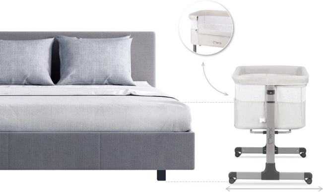 - Con la regolazione a sei livelli imposti il lettino all’altezza corretta, mantenendo il tuo bambino vicino e garantendoti comfort.