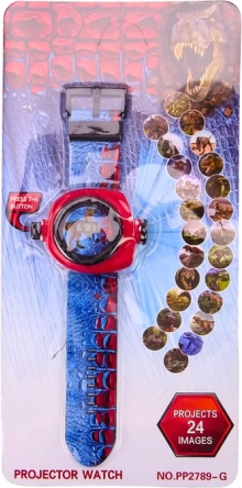 Divertente orologio elettronico per bambini con proiettore integrato di dinosauri offre 24 immagini da proiettare, comandi semplici tramite pulsante, cinturino ampio e confortevole e batterie incluse. Conforme a CE e EN71 ed è adatto dai 3 anni.