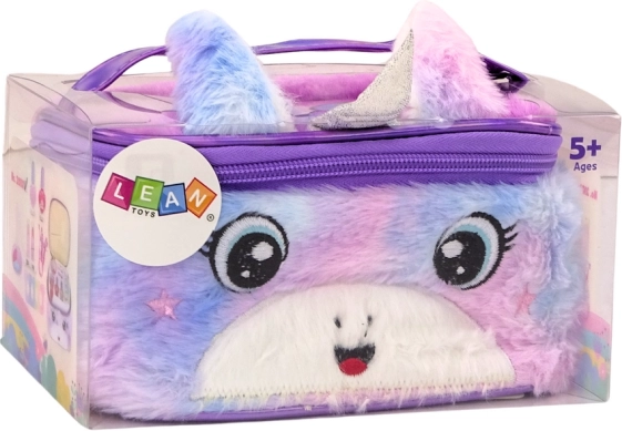 Incanta le piccole amanti della moda con questo adorabile set cosmetico in una pochette in peluche a tema unicorno. All’interno troveranno smalto per unghie, ombretto, rossetti, anellino con gloss e separadita – tutto per un gioco creativo e sicuro. La morbida pochette dai colori pastello è pratica, trasportabile e stimola fantasia e motricità fine.