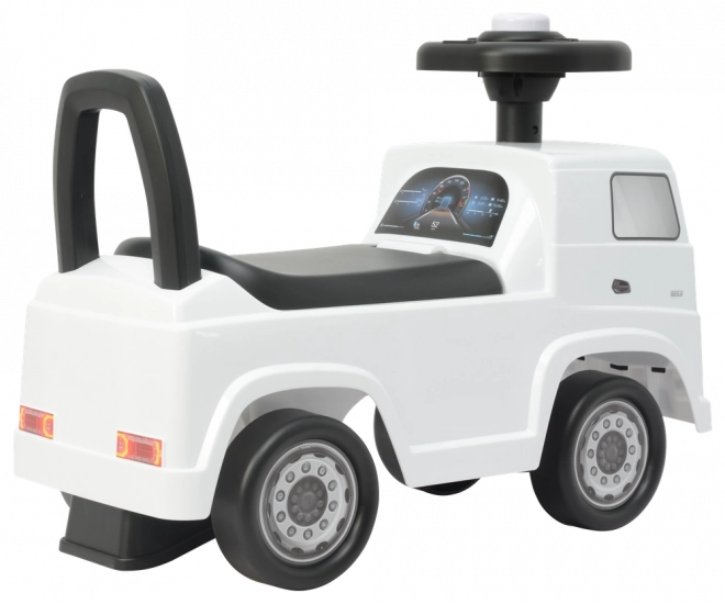 Elegante triciclo senza pedali per bambini con licenza MERCEDES ACTROS in colore bianco, ideale per le prime esperienze di guida in casa e all’aperto. Struttura in plastica leggera ma robusta, dettagli realistici di ruote, luci e calandra, e spinta confortevole con i piedini per favorire lo sviluppo dell’equilibrio e della motricità. Le dimensioni compatte ne facilitano la maneggevolezza e la conservazione.