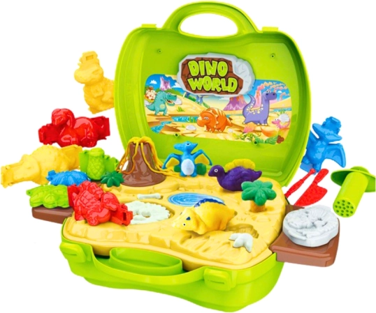 Scopri il mondo creativo dei dinosauri con il set di pasta modellabile in una pratica valigetta verde. I bambini potranno creare le proprie figure di dinosauri, scene preistoriche e, grazie alla pasta morbida e facilmente modellabile, sviluppare motricità fine, creatività e coordinazione occhio–mano. Il set include stampini, strumenti e una base per impronte di passi per dettagli realistici.