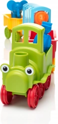 I bambini assembleranno una locomotiva e tre vagoni, posizioneranno due animaletti composti da tre parti ciascuno e aggiungeranno il macchinista. Le singole parti degli animali si possono combinare liberamente: nascono così animali reali e fantastici che sviluppano il pensiero creativo e la coordinazione occhio–mano.