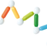 Le barrette e le sfere metalliche si uniscono con un solo clic. I bambini creano senza sforzo forme 2D e 3D, dalle torri ai ponti.