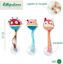 Il set di palline galleggianti di Lilliputiens è facile da pulire e asciuga rapidamente. Ogni pallina presenta un personaggio animale - Orso Cesare, Lemure Giorgio e Volpe Alice, che sono simboli tipici del marchio. Le palline sono leggere, morbide e galleggiano sull'acqua, mentre con il laccio al polso rimangono sempre a portata di mano. Grazie alle ventose in gomma possono essere attaccate a superfici lisce, come il fondo della vasca.