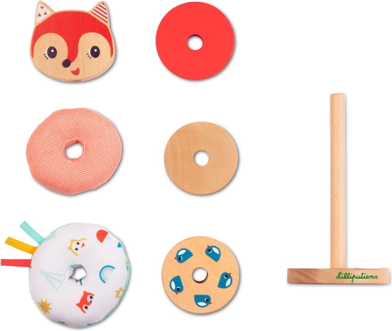 Con la piramide impilabile Volpe Alice, i bambini godono di giochi creativi che supportano le loro abilità motorie. Composto da diverse parti, tra cui 4 pezzi in legno e 2 in tessuto, e una base in legno. Ogni gioco con questa piramide è diverso, grazie alla possibilità di montaggi variegati.