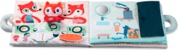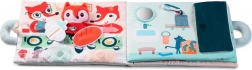È inclusa una piccola figurina della volpe, che invita al gioco interattivo. Il libro è realizzato in 100% poliestere, è facile da mantenere e può essere lavato con ciclo delicato a 30 °C. Le dimensioni 28 × 22 cm ne facilitano la manipolazione a casa e in viaggio.