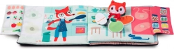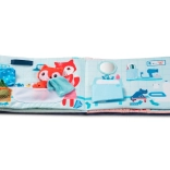Pagine in tessuto con materiali diversi e alette da sollevare sviluppano la motricità fine e la percezione sensoriale.