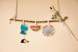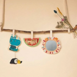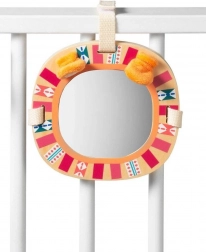 Uno specchio con una cornice in legno e un motivo di leone è ideale per la stimolazione visiva e per incoraggiare le abilità esplorative dei piccoli.