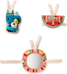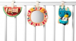 Ogni giocattolo è dotato di un pratico velcro per un facile montaggio su passeggino, seggiolino auto o culla. Questi giocattoli aiutano anche a sviluppare la coordinazione mano-occhio e la percezione sensoriale attraverso tatto, vista e udito.