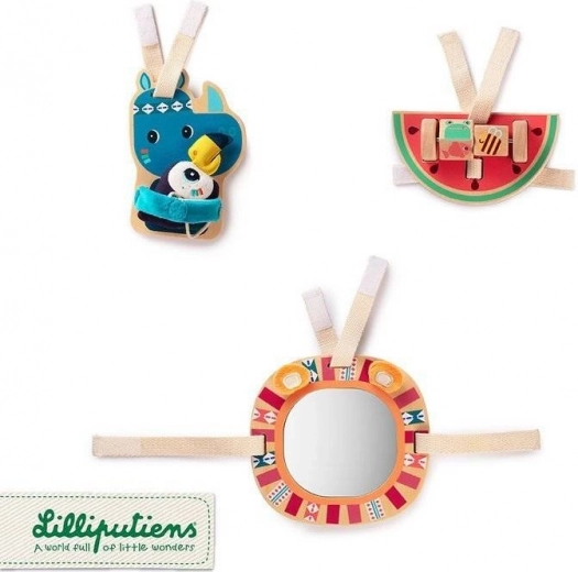 Questo splendido set di tre giocattoli sospesi in legno della collezione Rinoceronte Marius del marchio belga Lilliputiens si distingue per la sua praticità e qualità. Ogni giocattolo è realizzato in legno naturale e offre un'esperienza unica per i bambini dai nove mesi in su: