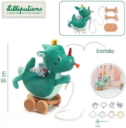 Il giocattolo include un cordino morbido per la trazione, sufficientemente lungo per un uso confortevole. Il divertente design del drago con ali fiorite e dettagli adorabili delizierà non solo i bambini, ma anche i loro genitori. Può essere collegato ad altri giocattoli della stessa collezione, permettendo di ampliare l'esperienza di gioco.