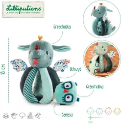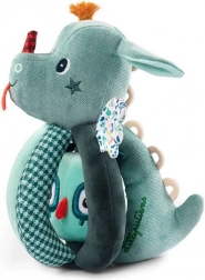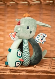 Incontra il draghetto Joe, un compagno colorato per le prime scoperte. Il corpo a forma di pallina è composto da cinque morbide impugnature, una con scagliette sul dorso, ali in materiali diversi e una civettina rimovibile con sonaglio nascosto. Nella testolina c’è un sonaglio tintinnante e il materiale frusciante aggiunge ulteriori suoni. Il gioco favorisce presa, scuotimento, inserimento ed estrazione, stimola vista, udito e tatto.