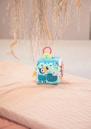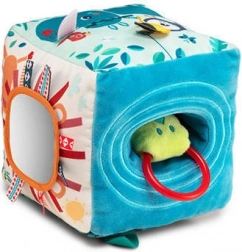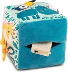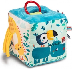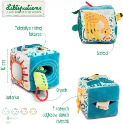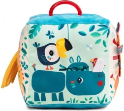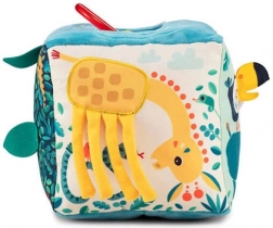 Avventurati con il cubo Giungla del marchio belga Lilliputiens. Questo giocattolo morbido e interattivo include: