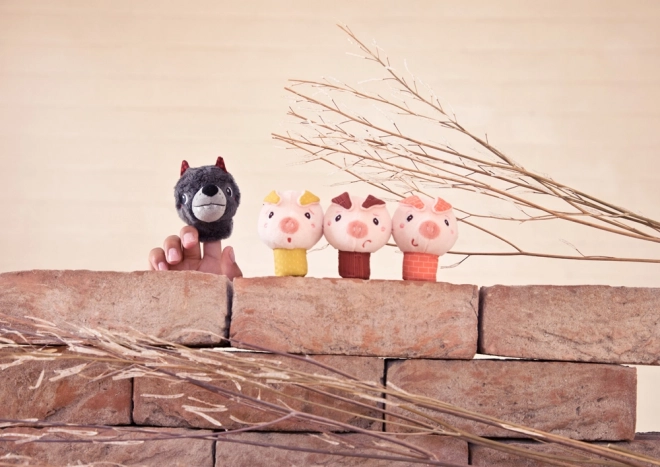 Rivivete la fiaba classica I TRE PORCELLINI con l'adorabile set di burattini da dito di LILLIPUTIENS. I morbidi burattini in tessuto del lupo e dei tre porcellini si adattano a dita di bambini e adulti e trasformano la lettura in un momento di gioco condiviso.