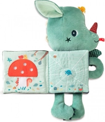 Il drago Joe tiene un libricino morbido ricco di illustrazioni di animaletti del bosco e motivi magici. Le pagine frusciano e alcune tintinnano per stimolare la percezione sensoriale.