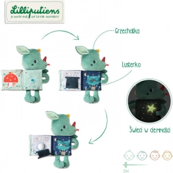 Questo coccolo multifunzionale con libro del brand Lilliputiens unisce un morbido peluche e le prime letture in un unico prodotto. Il draghetto Joe presenta dettagli accattivanti – alucce, orecchiette, una linguetta simpatica e un pratico fissaggio del libro con velcro. Ogni pagina sorprende con un effetto diverso che sviluppa vista, udito e tatto.