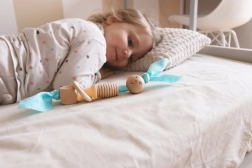 La combinazione di legno naturale e tessuto morbido è piacevole al tatto e resistente per il gioco quotidiano.