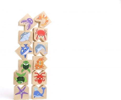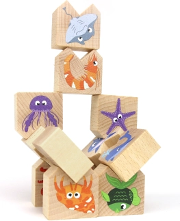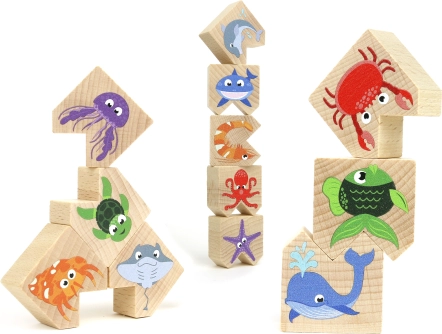 Il gioco di equilibrio favorisce lo sviluppo delle abilità motorie e della creatività dei bambini attraverso la composizione giocosa degli animali marini.