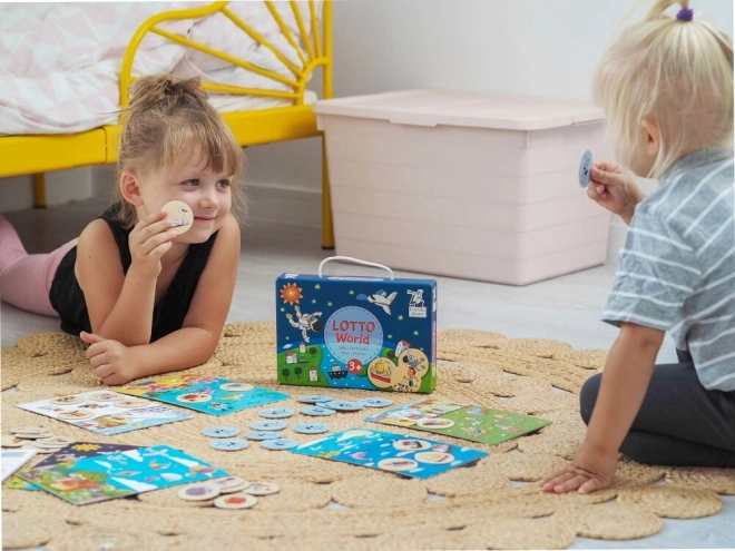 Loto Mondo è un gioco destinato a 1-6 giocatori e offre quattro diverse varianti di difficoltà, garantendo divertimento per bambini di età e abilità diverse. L'obiettivo principale è assegnare i gettoni alle immagini corrispondenti sulla tavola di gioco. In questo modo, i bambini non solo arricchiscono il loro vocabolario, ma si occupano anche di importanti processi cognitivi.