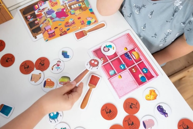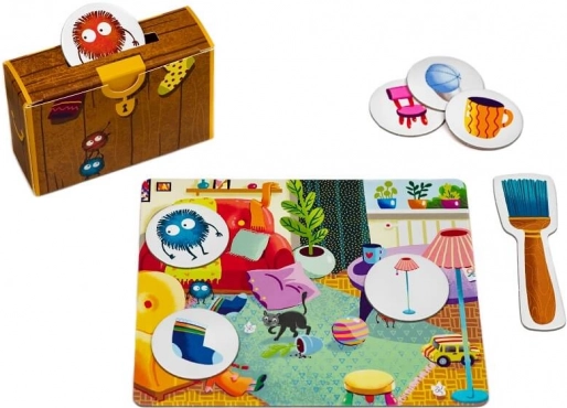 Questo gioco dà nuova vita alla pulizia! I giocatori cercano di fermare le maliziose palline di polvere prima che raggiungano i loro oggetti come calzini, bambole o auto. I bambini imparano a classificare gli oggetti per tipo, dimensione o colore, il che stimola memoria, concentrazione e rapidità.