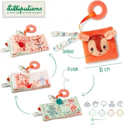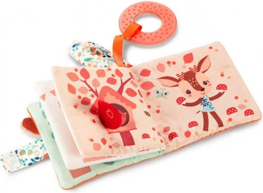 Il primo morbido libricino per bebè della collezione Stella del marchio Lilliputiens combina una soffice copertina in peluche con il dolce musino della cerbiatta, pagine fruscianti, diverse texture e un massaggiagengive testurizzato per alleviare il fastidio della dentizione. Favorisce lo sviluppo sensoriale, la motricità fine e la fantasia, si aggancia facilmente al passeggino grazie al laccetto con chiusura a strappo ed è ideale come regalo per bebè dai 6 mesi in su.