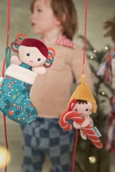 Crea un'atmosfera natalizia magica con questo affascinante folletto Lilliputiens, nascosto in una calza blu. Perfetto come decorazione per l'albero di Natale o come compagno di gioco per i bambini durante l'avvento.
