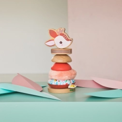 La cerbiatta Stella invita i piccoli costruttori in un mondo di scoperte. Questa piramide impilabile in legno di qualità e morbidi elementi tessili favorisce la coordinazione occhio–mano, la pazienza e la destrezza. I pezzi possono essere impilati in qualsiasi ordine: non esiste un modo giusto o sbagliato, così ogni composizione appare un po' diversa e stimola la creatività.
