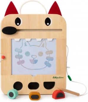 La tavoletta è realizzata in legno e multistrato e offre una costruzione resistente adatta al gioco quotidiano. Se il disegno non riesce, basta usare il “naso” cancellante di Ludovic e la superficie è di nuovo pronta per nuove idee. Le carte di gioco sono riposte sul retro, così hai tutto ben organizzato.
