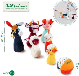 Scoprite la magia dei birilli morbidi Lilliputiens della collezione Fattoria. Gli allegri protagonisti – l’asinello Ignace, la mucca Rosalie, il maialino Simon, la pecora Yvon, la gallina Paulette e l’anatra Gaston – hanno una base stabile con leggera zavorra, per essere facili da mettere in piedi e altrettanto facili da abbattere. Inclusa anche una colorata pallina in peluche con campanellino che invoglia a lanciare e rotolare.