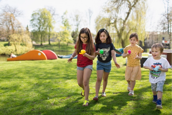 La staffetta dell’uovo è un gioco di movimento semplice e coinvolgente per bambini e adulti. I giocatori trasportano su un cucchiaio di plastica un “uovo” colorato con guscio e cercano di completare il percorso senza farlo cadere. Scelta ideale per feste per bambini, scuole dell’infanzia, campi e pomeriggi in famiglia all’aperto o in palestra.