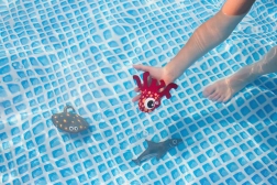 Scopri la magia dell'immersione con animali marini appositamente progettati per i giochi acquatici. Gli animali sono realizzati in neoprene di alta qualità e, grazie all'imbottitura di sabbia, affondano sul fondo, offrendo una sfida divertente per i piccoli nuotatori. Ogni animale ha un diametro di circa 21 cm e il set comprende tre forme diverse.