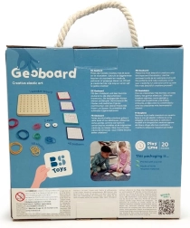 Geoboard è ideale per l'uso domestico e scolastico, dove può sostenere meravigliosamente la creatività, concentrazione e pazienza dei bambini. È facilmente trasportabile grazie alla confezione pratica con maniglia, rendendolo un giocattolo ideale per i viaggi.