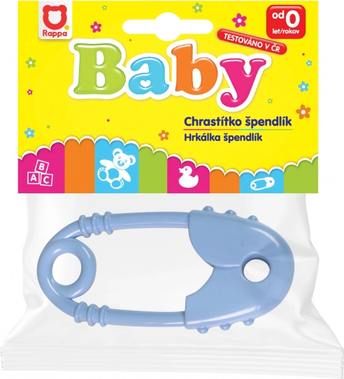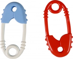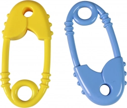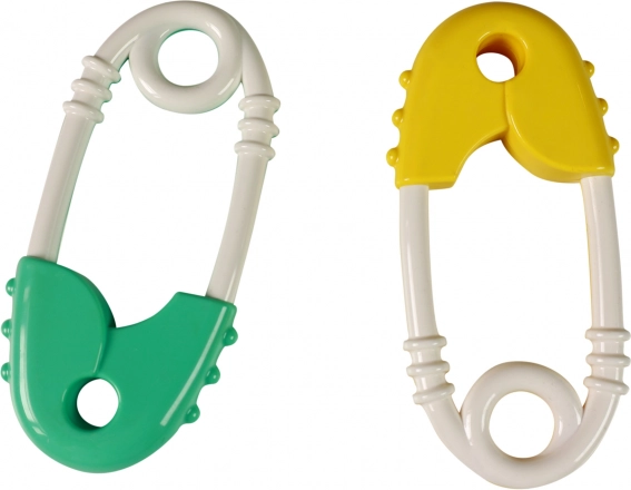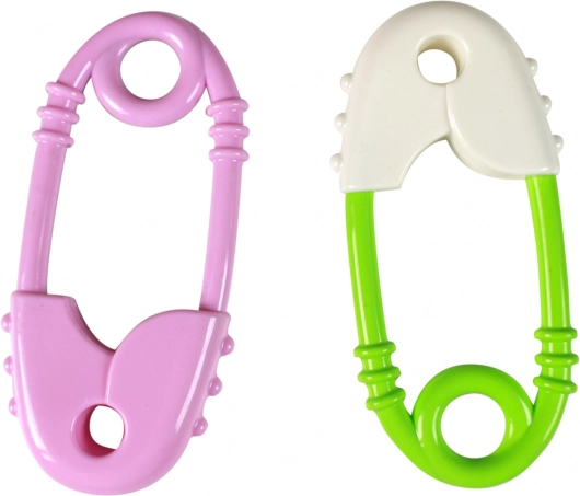 Divertente sonaglio e massaggiagengive a forma di spilla da balia per neonati, supporta la motricità fine e dona sollievo durante la dentizione. Grazie alla superficie testurizzata, ai bordi arrotondati e sicuri e alla presa facile, i bambini lo maneggiano con facilità. Mix di colori fornito in base alla disponibilità di magazzino.
