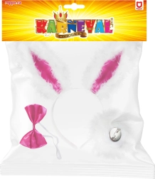 - Cerchietto con orecchie da coniglio, papillon rosa con elastico, coda con spilla