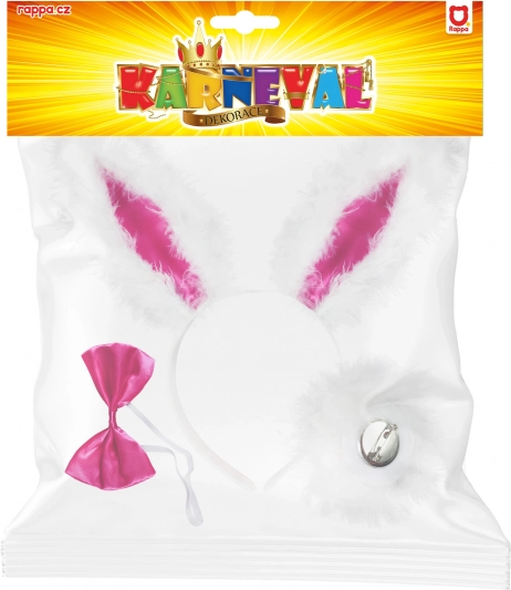 Delizioso set da carnevale per un look da coniglietto a feste, servizi fotografici ed eventi a tema. Include un cerchietto con orecchie da coniglio, un papillon rosa con elastico e una coda con spilla. Leggero, comodo e pronto all’uso immediato – l’accessorio perfetto per costumi, party e carnevale.