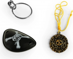 - Confezione completa: sciabola, benda per l’occhio, medaglione con cordino e orecchino.