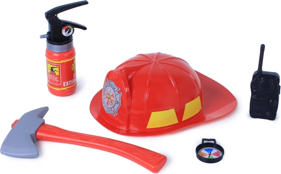 Giocattolo pratico per i piccoli soccorritori: set da pompiere completo con elmetto, ascia, ricetrasmittente, bussola ed estintore ad acqua. I bambini si divertiranno con un gioco realistico da pompiere, materiali sicuri in PVC e ricchi accessori per ore di divertimento e apprendimento.