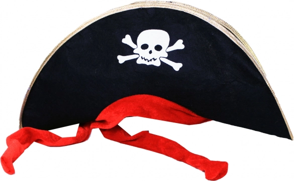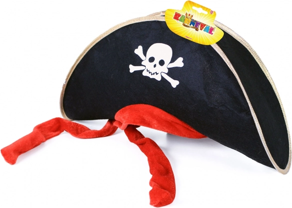 Diventa la stella della festa in maschera con questo straordinario cappello in stile capitano pirata, pensato per gli adulti. Realizzato in velluto nero, il cappello è impreziosito da un’iconica stampa di teschio pirata, rifinito con un nastro rosso e bordi dorati.