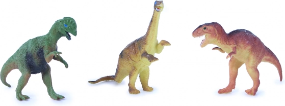 Scegli il tuo dinosauro preferito! Nella confezione troverai 5 tipi di dinosauri in gomma. Dimensione circa 12 cm.