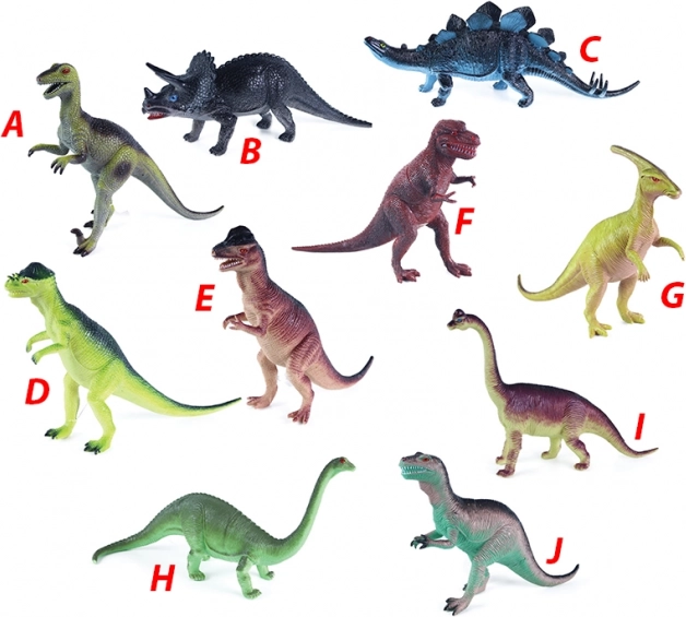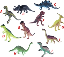 Il set include dieci diversi tipi di dinosauri in vari colori che stupiranno ogni bambino con la loro diversità.