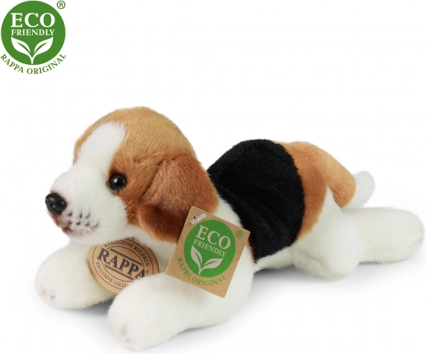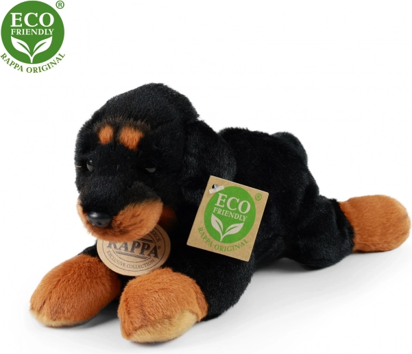 Cane di peluche sdraiato di 16 cm di grandezza, disponibile in diverse razze, come beagle, griffone, labrador o rottweiler. Realizzato con materiali ecologici che rispettano tutti gli standard di sicurezza.