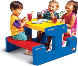 Goditi momenti in famiglia in giardino con il robusto tavolo da picnic per bambini LITTLE TIKES Jr in colore blu. Offre spazio fino a 4 bambini, è realizzato in plastica resistente e ha dimensioni compatte 72 × 84 × 47 cm. Ideale per mangiare all’aperto, giocare e attività creative – struttura stabile, manutenzione facile e design accattivante per ogni cortile o terrazza.