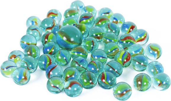 Include 1 grande e 50 piccole biglie adatte sia per giochi che per decorazione.