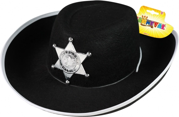 Dona al costume del piccolo cowboy un aspetto autentico. Questo cappello da cowboy per bambini, in elegante colore nero, è impreziosito da una vistosa stella da sceriffo e da un bordo bianco a contrasto che aggiunge un tocco di stile. Il cordino sottogola assicura che il cappello resti ben fermo anche durante il divertimento.