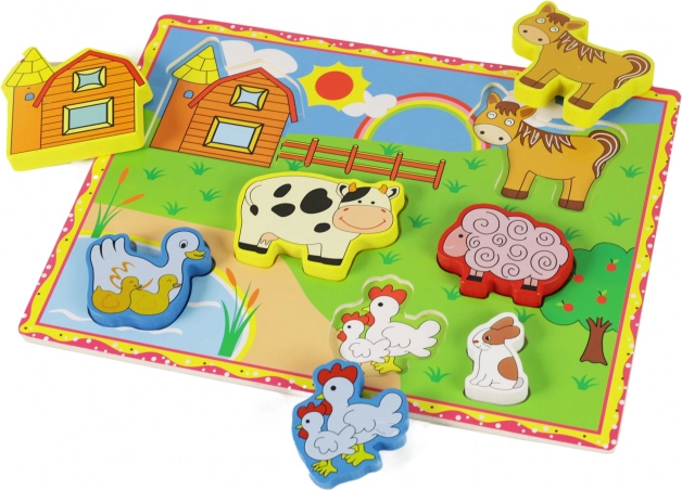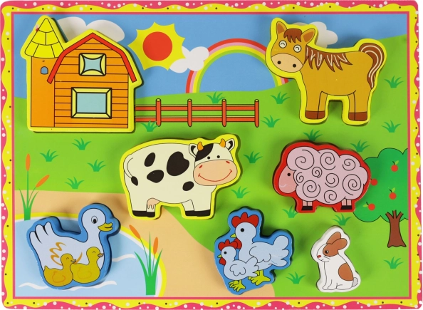 Il puzzle di legno con animali della fattoria è un eccellente strumento per lo sviluppo delle capacità motorie del tuo bambino. Grazie a questo gioco, i bambini imparano a riconoscere forme e animali. Inoltre: