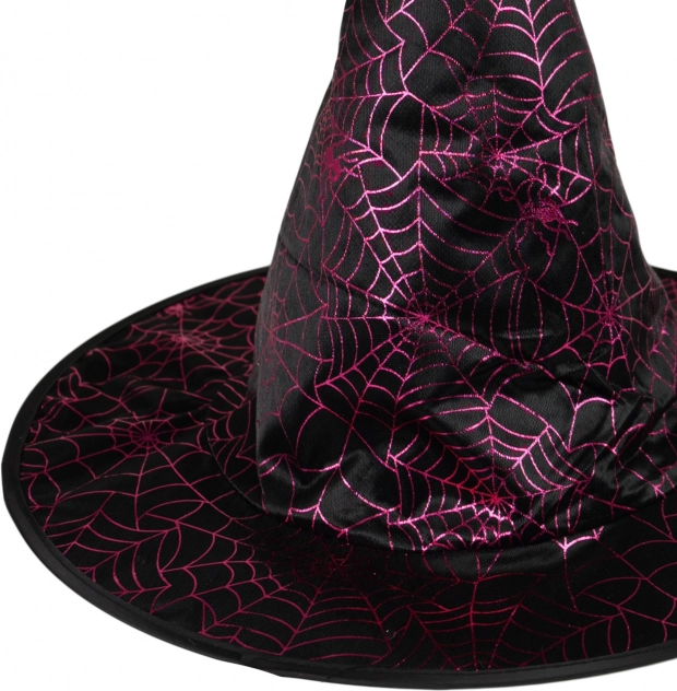 Il cappello è di colore nero con ragnatele viola luminose, il che lo rende un accessorio ideale per ogni costume da brivido.