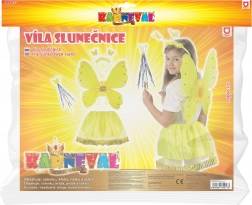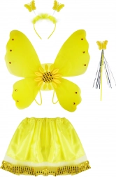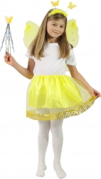 - Contenuto della confezione: ali con girasole e strass, gonnellina vaporosa con paillettes dorate, cerchietto con farfalline, bacchetta magica